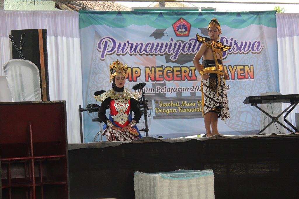 Purnawiyata siswa kelas IX dilaksanakan pada Sabtu, 25 Mei 2024. Pelaksanaan Purnawiyata ini bertempat di sekolah tepatnya di Indoor SMP N 1 Kayen, pada pukul 08.00 WIB sampai selesai. Acara ini dimeriahkan oleh berbagai penampilan dari siswa-siswi, guru hingga karyawan SMP N 1 Kayen. Pada acara Purnawiyata memang biasanya menjadi ajang siswa-siswi untuk menampilkan bakat-bakat mereka, mulai dari menyanyi, tari tradisional, dance modern, pantomim, pencak silat, band serta drama.